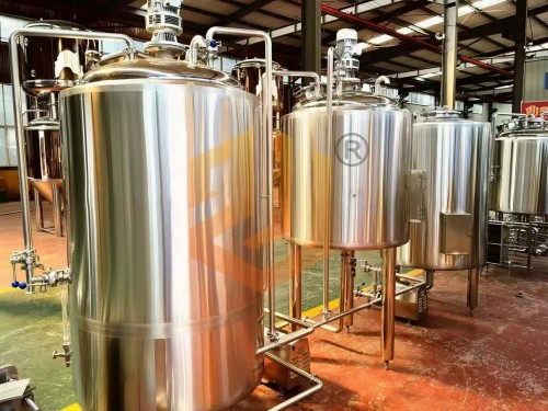 精釀啤酒設備使用的過濾槽與旋沉罐:采用上下兩層的設計方式,整體占地面積小,過濾槽采用銑制篩板,頂部采用異型人孔設計,側(cè)面配有出糟口,方形人孔門設計更有利于啤酒麥糟的清理工作,同時還配有出糟板。內(nèi)部配有耕刀裝置,用于疏松麥糟層以及出糟使用。
